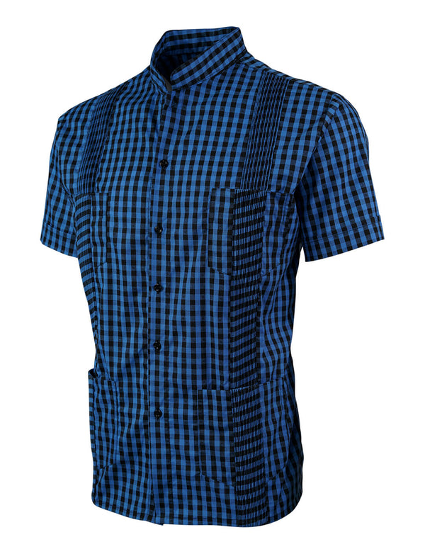 Handmade in Yucatán Mexico. Based in Miami Florida. Shipped within approximately 20 business days. Black con Cerulean Guingán Guayabera: Where Tradition Meets Modernity Elevate your wardrobe with the Black con Cerulean...