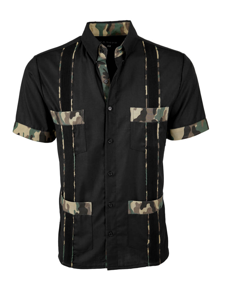 Ready to Go | Negro Camuflaje Short Sleeve Guayabera