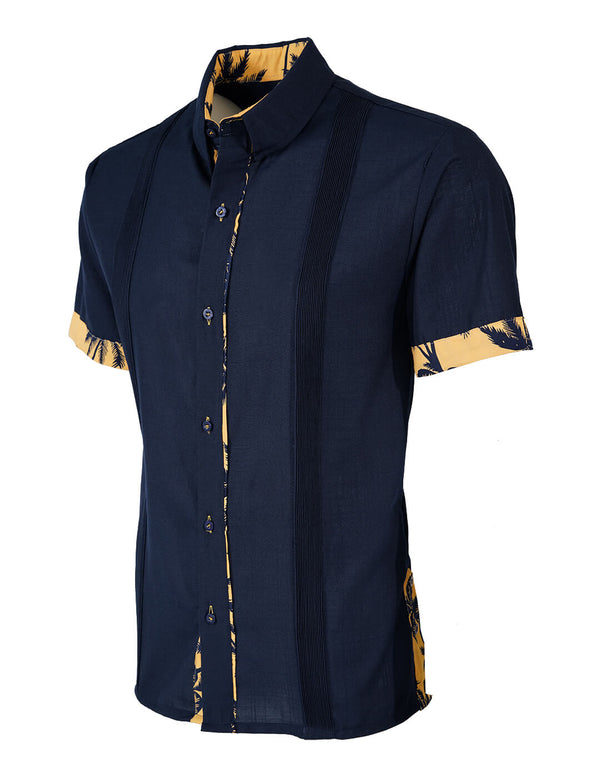 ⚡ ADD TO CART TO SEE FINAL PRICE ⚡ Escape to Paradise: The Navy Blue Tropical Oasis Guayabera Embark on a viaje to a hidden paradise with the Tropical Oasis Guayabera Shirt....
