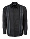 Introducing the "Ancient Pixel Black Guayabera" from Y.A.Bera Clothing's Yucateco Collection, a sophisticated and contemporary take on the traditional guayabera. This striking shirt, crafted from luxurious black linen, showcases a captivating blend of heritage craftsmanship and modern digital-inspired design.
