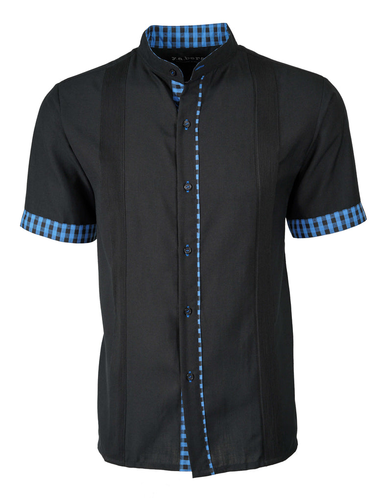 Elevate your wardrobe with the Black con Cerulean Guingán Guayabera. This isn't your abuelo's guayabera (unless he's cool); it's a fusion of sofisticación con un toque juvenil (sophistication with a youthful touch).