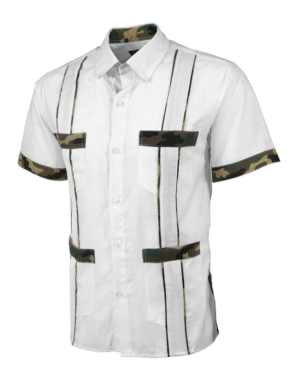 Elevate Your Everyday Look: Essentials Blanco con Khaki Accent Guayabera Embrace timeless style with the Essentials Blanco con Khaki Accent Guayabera. This classic guayabera features a crisp lino blanco blend...